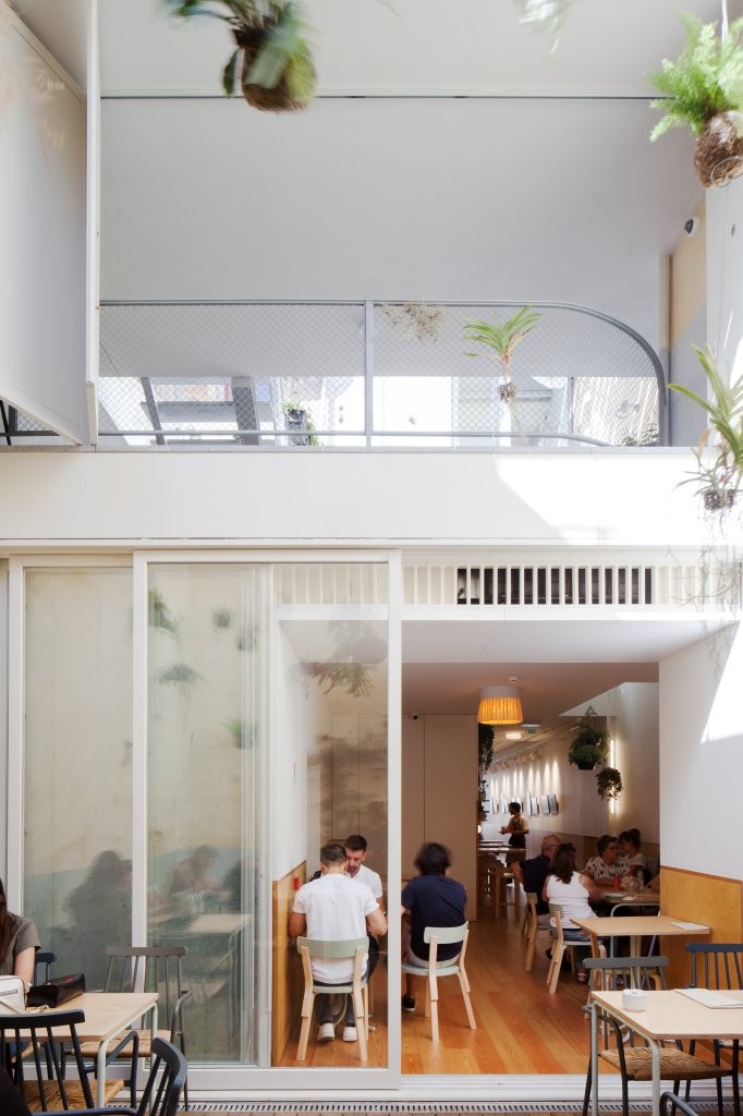 Para marcar a obra e demonstrar a todos eles o seu funcionamento, foi necessário montar três tabuleiros horizontais (foi permitido acrescentar um piso), como plantas impressas à escala real. Reutilizámos a estrutura do prédio original até ao tardoz, abrindo um grande saguão ventilado ao centro, que viria a organizar todo o núcleo de acessos e cozinhas, com um elevador metálico que também serve de estrutura aos pisos de madeira.