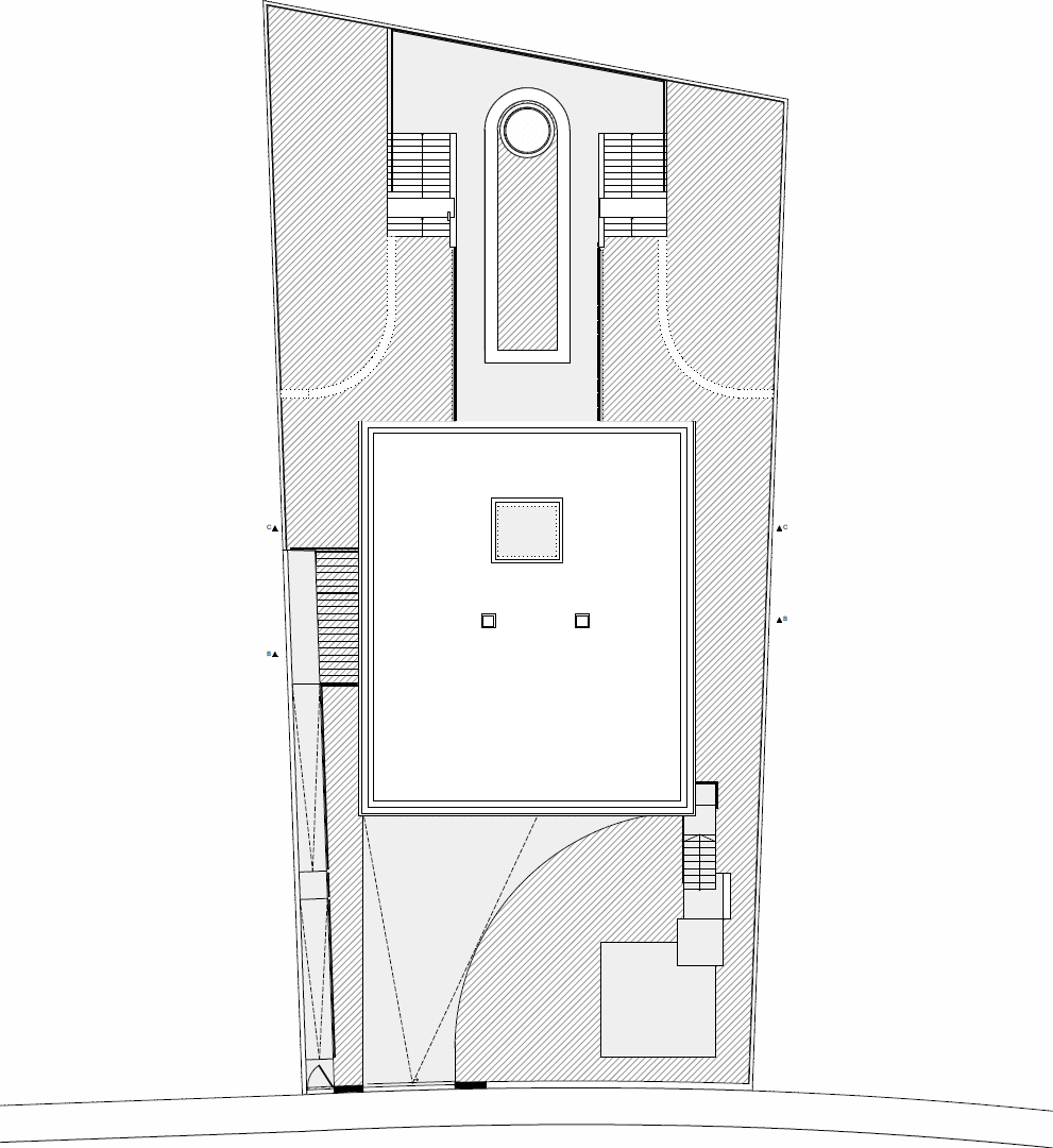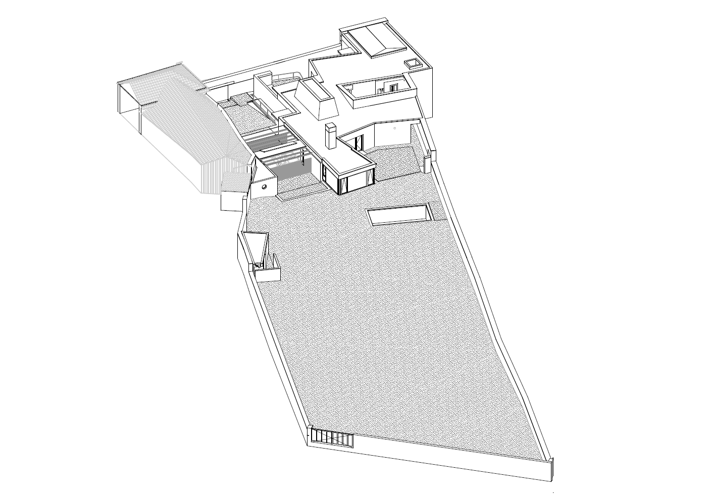 From the two pre-existing schist stone volumes, we occupied the one facing the street with rooms, whilst the other we “disoccupied” with an exterior patio. The proposal aims to belt and consolidate the pre-existences by building inside and around a new concrete “coffer”, enough elastic to transport one living the well consolidated street to a maximum isolation of the fields in the north sector. This “preservation” strategy could have some roots, with the required distances, in the superefficient and lasting example of the Cordoba Mosque and Cathedral.