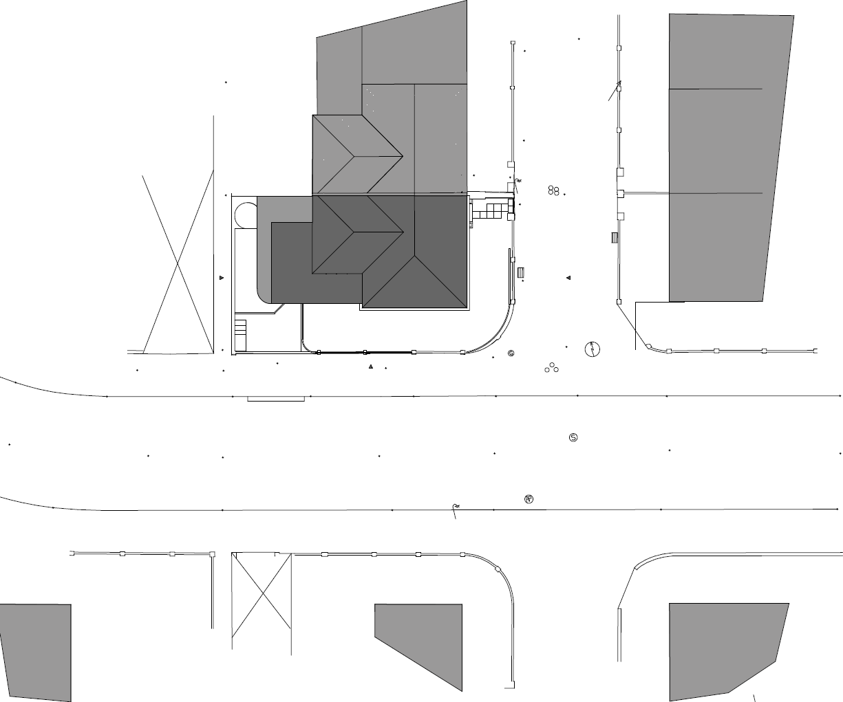 The concrete walls and slabs are designed both to adapt to the implantation of the pre-existing houses and to a new organizing main axis that defines the entrance space and the more technical area for storage/ car’s porch . Between these two main imposed and auto imposed circumstances, the design intended to create a system of four more demure patios, more or less opened to the outside landscapes. Two of them belong to the street quadrant and the other two belong to the fields.