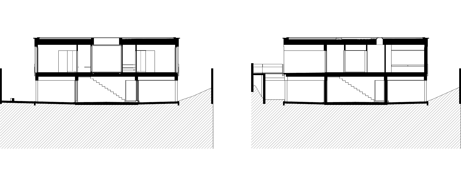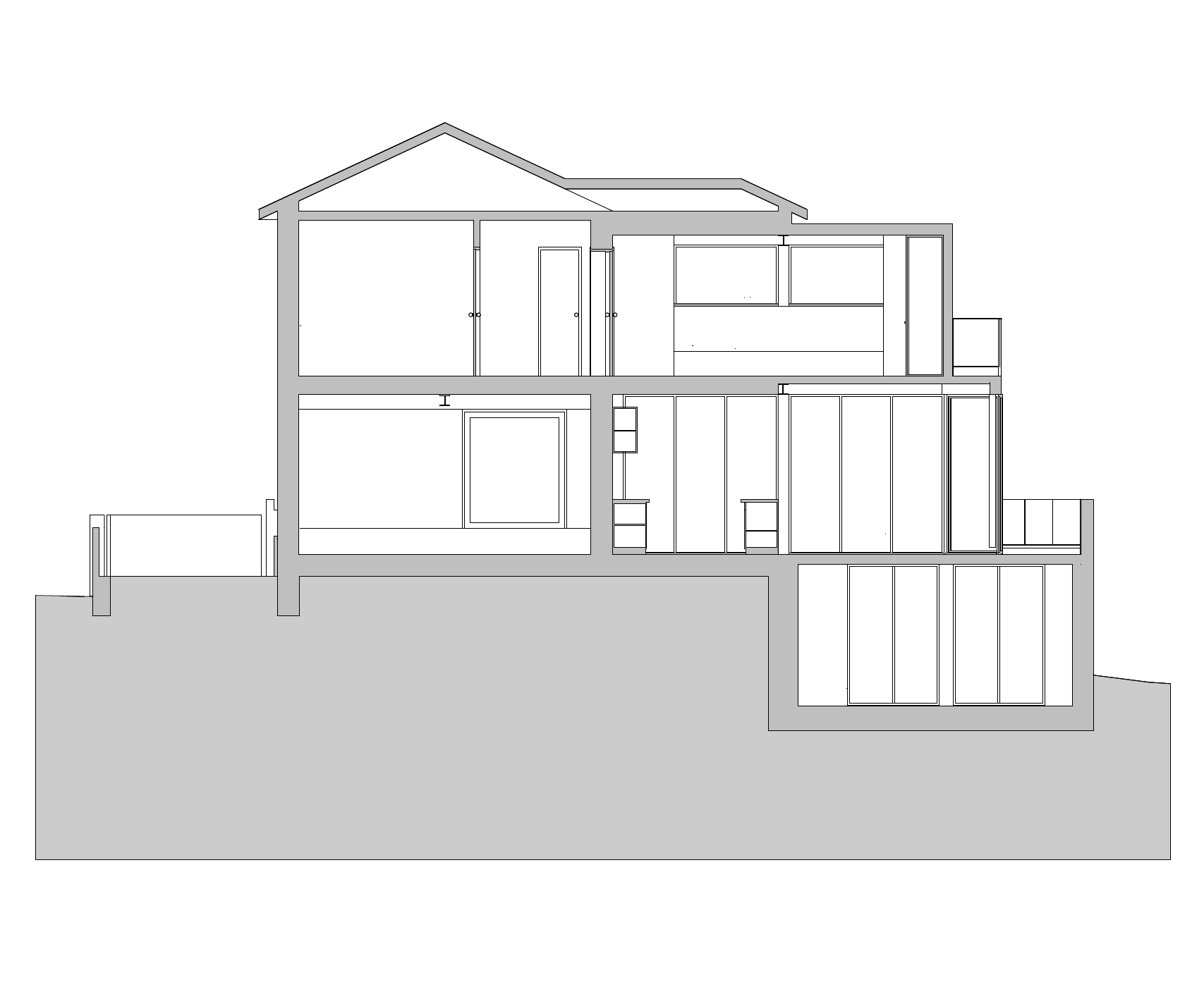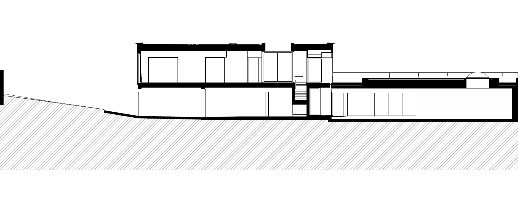The plot, very long but nevertheless wide, faced the street in the low level and a big field in the high level. This difference of heights creates a big difference of quadrats, almost creating two separate worlds in the same plot. The existing house in schist holds a romanic church capitel in its facade and arose an initial debate of how to preserve it with the local authorities, due the state of total ruin and the intentions to extend the house to more than its double .